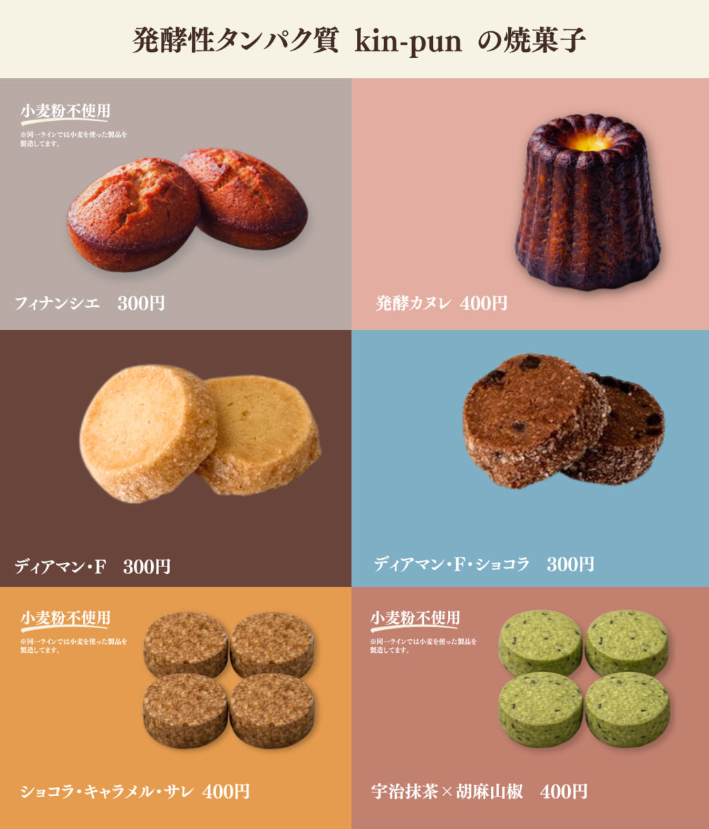発酵性タンパク質食品「kin-pun」を使用した、新作の焼き菓子を販売いたします。